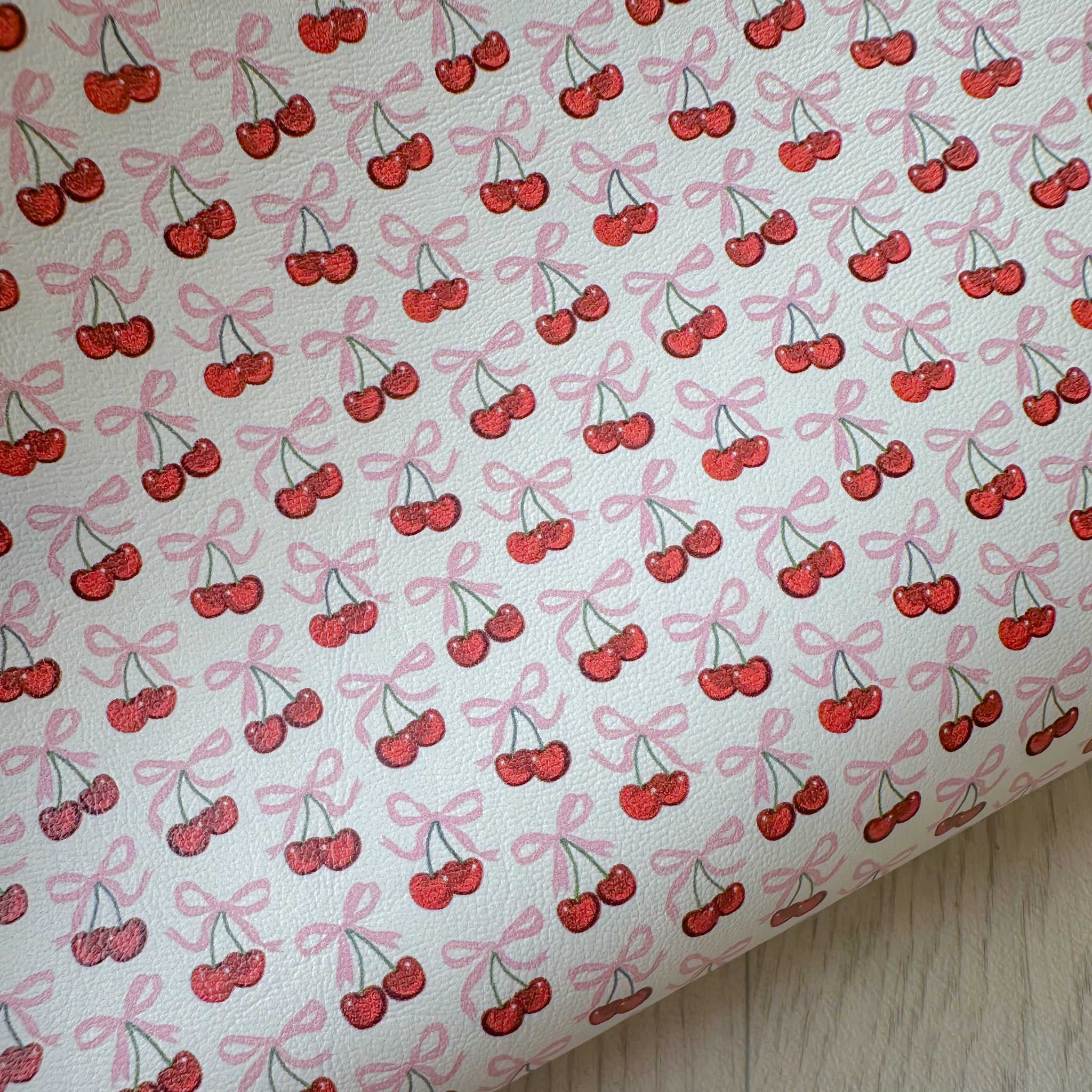 Pink Bow Cherries Leatherette