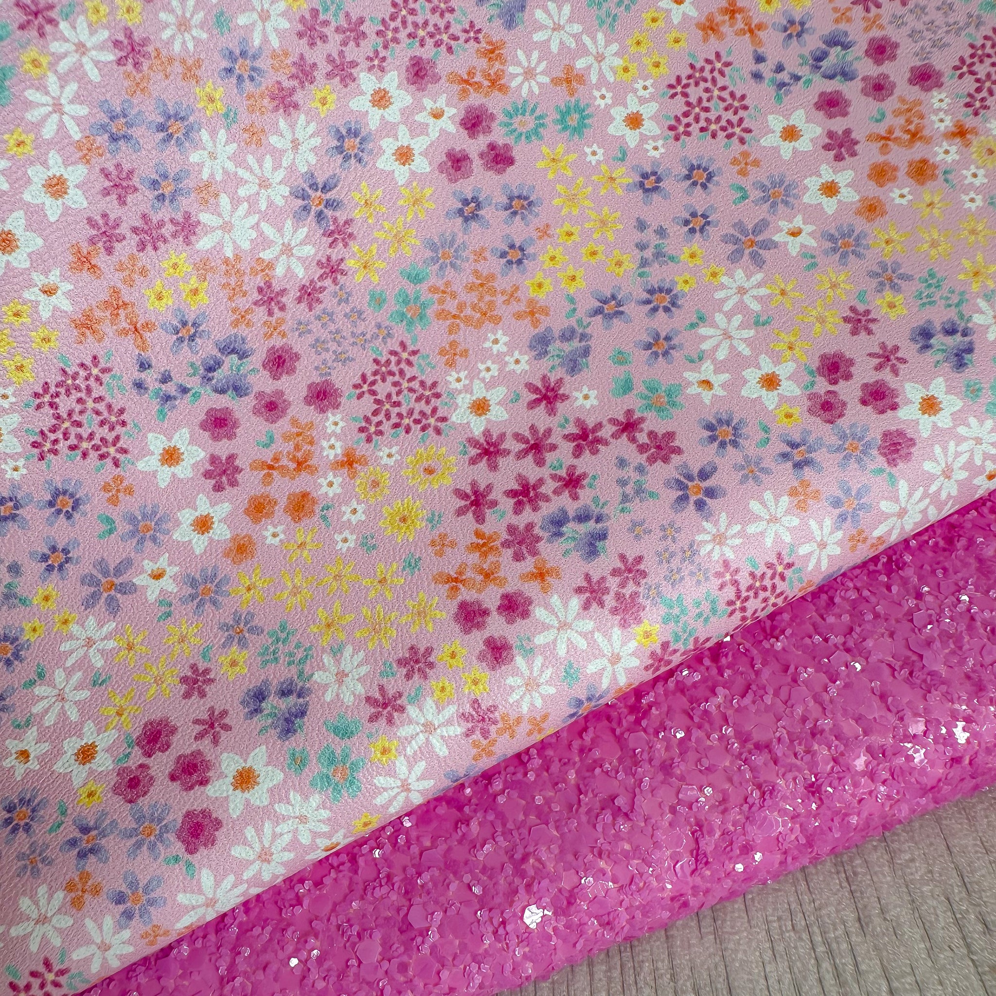 Pink Rainbow Floral Glitter Duo
